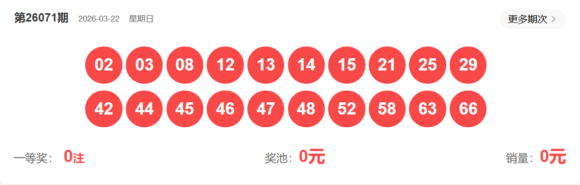快乐8第071期开奖如下