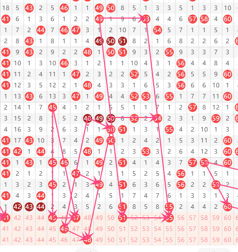 三区分析:【41-60】(走势图标注号码非小黄车大底,请谨慎参考,具体思路
