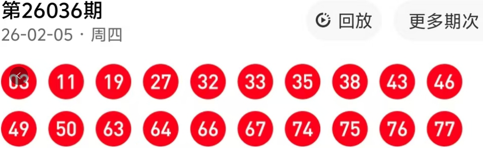 26034期命中9码 19,30,31,32,43,44,48,66,80