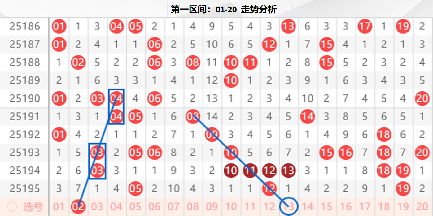 一区分析:【01-20】(走势图标注号码非小黄车大底,请谨慎参考,具体思路将在直播间分享讨论)