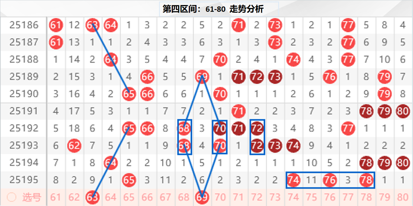 四区分析:【61-80】(走势图标注号码非小黄车大底,请谨慎参考,具体思路将在直播间分享讨论)