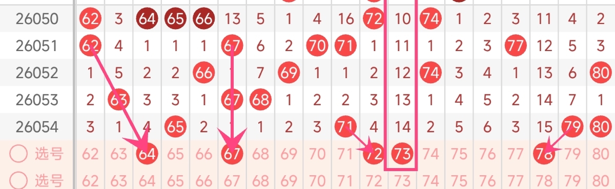 四区号码走势分析与推荐(61-80):