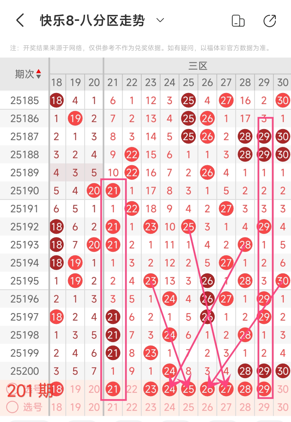 上期三区开出24 28 29 30这4个号码,本期考虑3个。