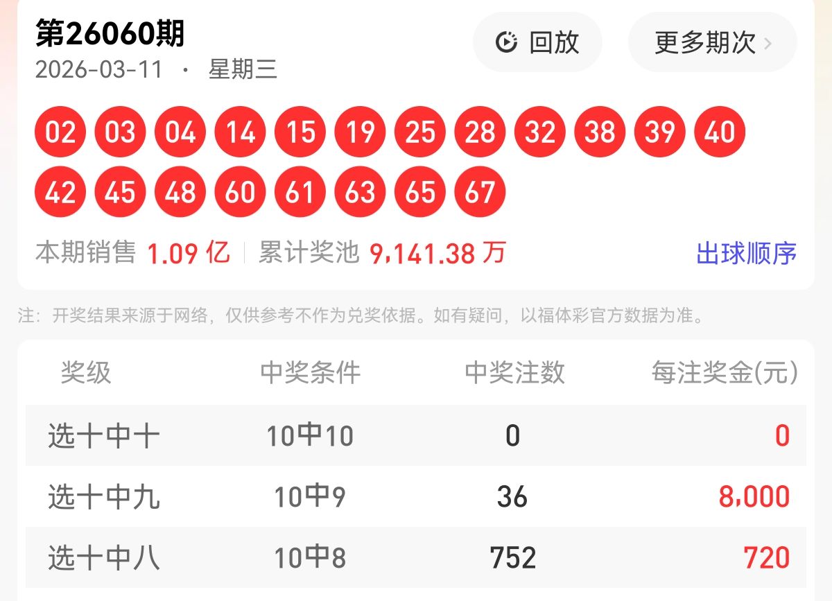花花快乐8第26061期选号分析,上期命中铜胆19,本期目标拿下四胆