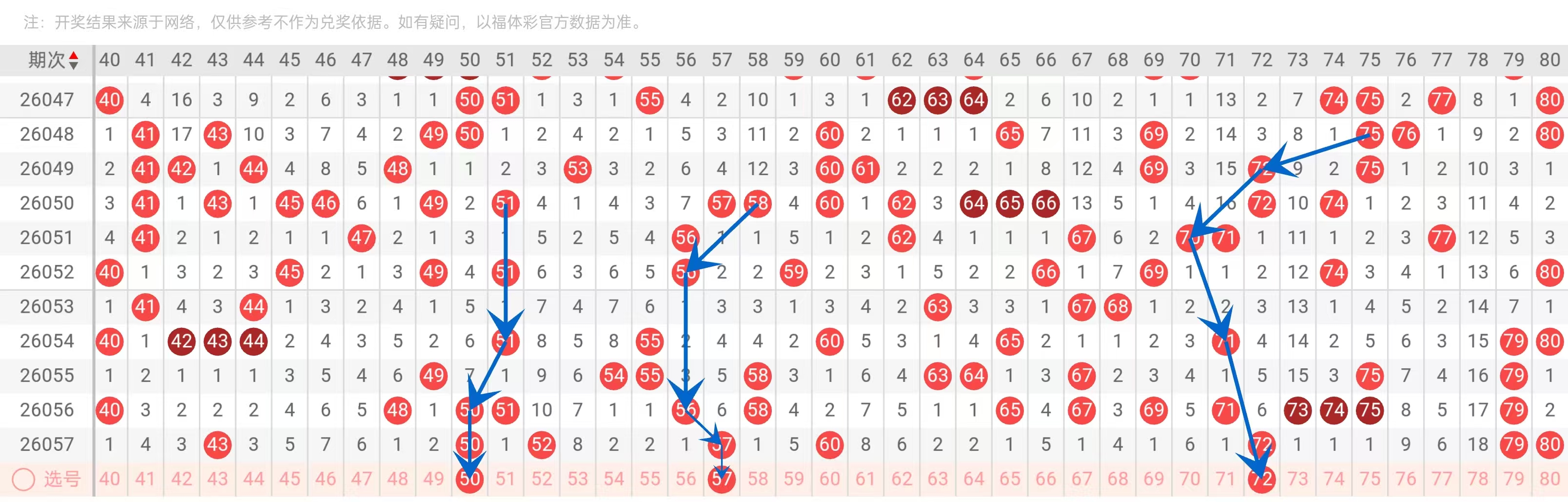 尾2(12、22、32、52、72)虽热度略低于尾0和尾7,但其稳定性强,近期未出现大幅波动,适合作为“防守型”号码。我们选取72作为高位尾2代表,既能拉高和值,又具备尾数联动性。