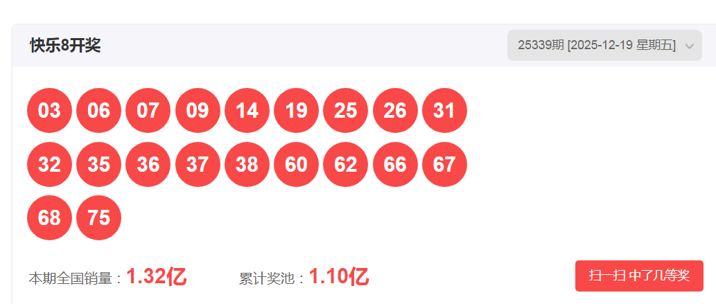 一、快乐八2025339期开奖号码