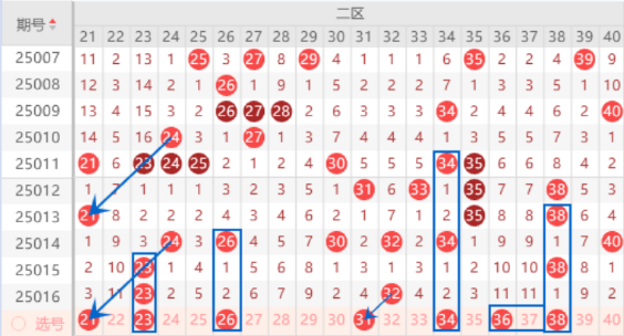 本期的21号数字是属于断斜连号码,可以防守一下21 23号数字同出的情况。上期开出了32号数字,本期我们防守一下走分边的情况,所以本期的31 33号数字我们要注意出一个号码的情况,其中的31号数字可以重点关注一下。本期的36 37号数字我们要注意出一个号码的情况,属于连号遗漏11期的号码落号情况,其中的36号数字我们可以重点关注一下出号情况。本期的38号数字是属于空一对称号码,可以防守一下出号情况。