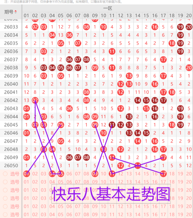 我们先来看下一区的基本走势情况,上期开出了两枚开奖号码,本期预测开出3-4枚开奖号码,首先我们来看01的百期空一落号点位带奇数空二三斜连走势。楼梯形态的04 05建议二选一或者同出。交叉走势09 11和同路交叉的11 17建议三选一或者三选二。