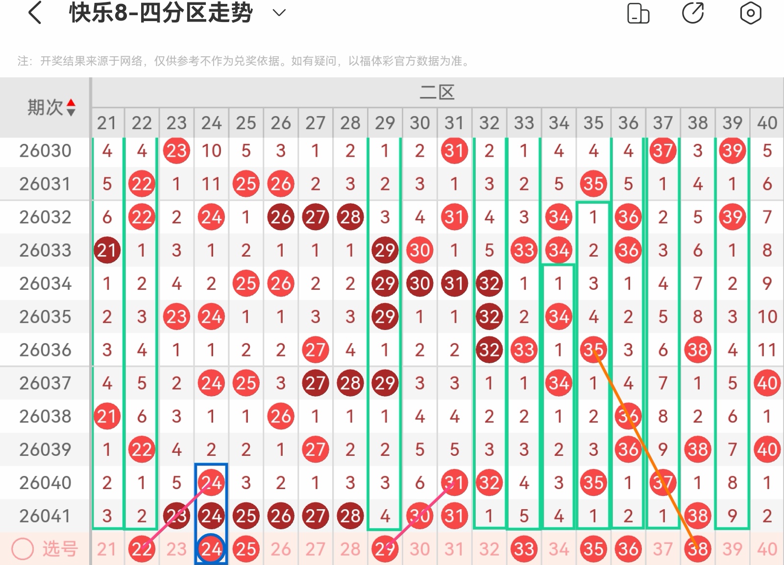 大家好,我是甜丝丝的坏事,主要以快乐八的形态走势、空位走势、遗漏走势以及斜连走势相结合的方法,用公认的四走势来进行预测分析,希望能让你有所收获。