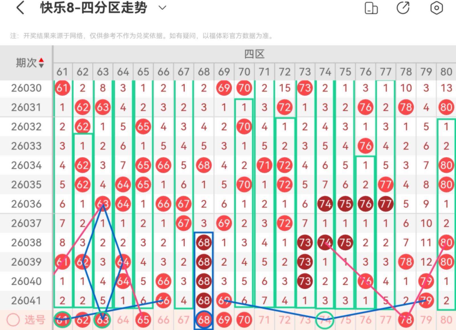 下面我为大家分享一下快乐八第26042基本走势分析: