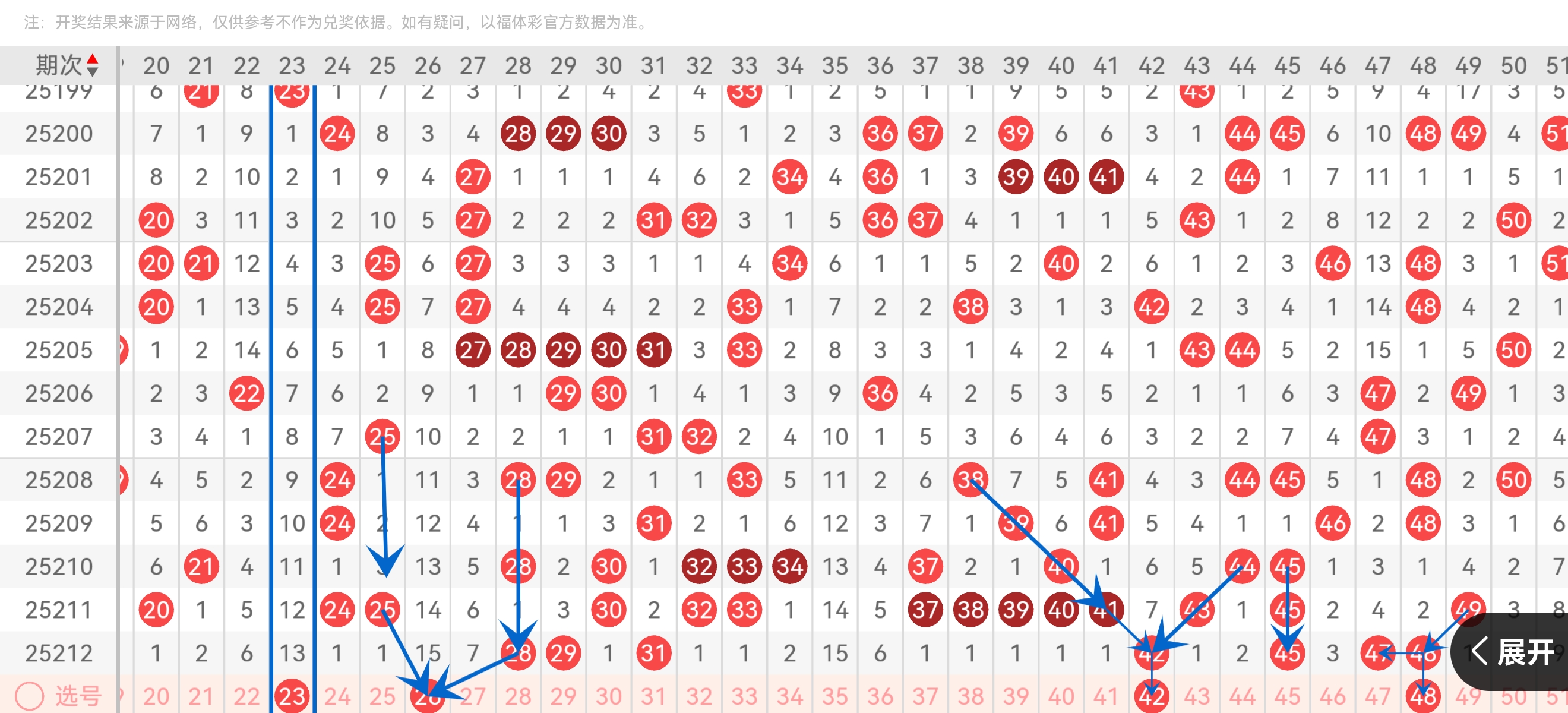 类似案例:42(遗漏7期→25212期开出)、26(遗漏15期→25212期未开但概率累积至本期)。