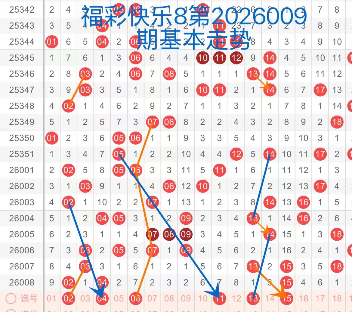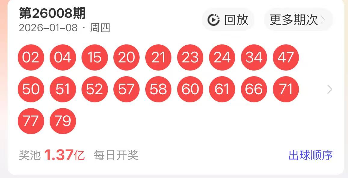 下面是我对2026009期福彩快乐8的分析和预判,希望通过我的分析能让大家今晚大满贯!福彩快乐8上期开奖号码如下图