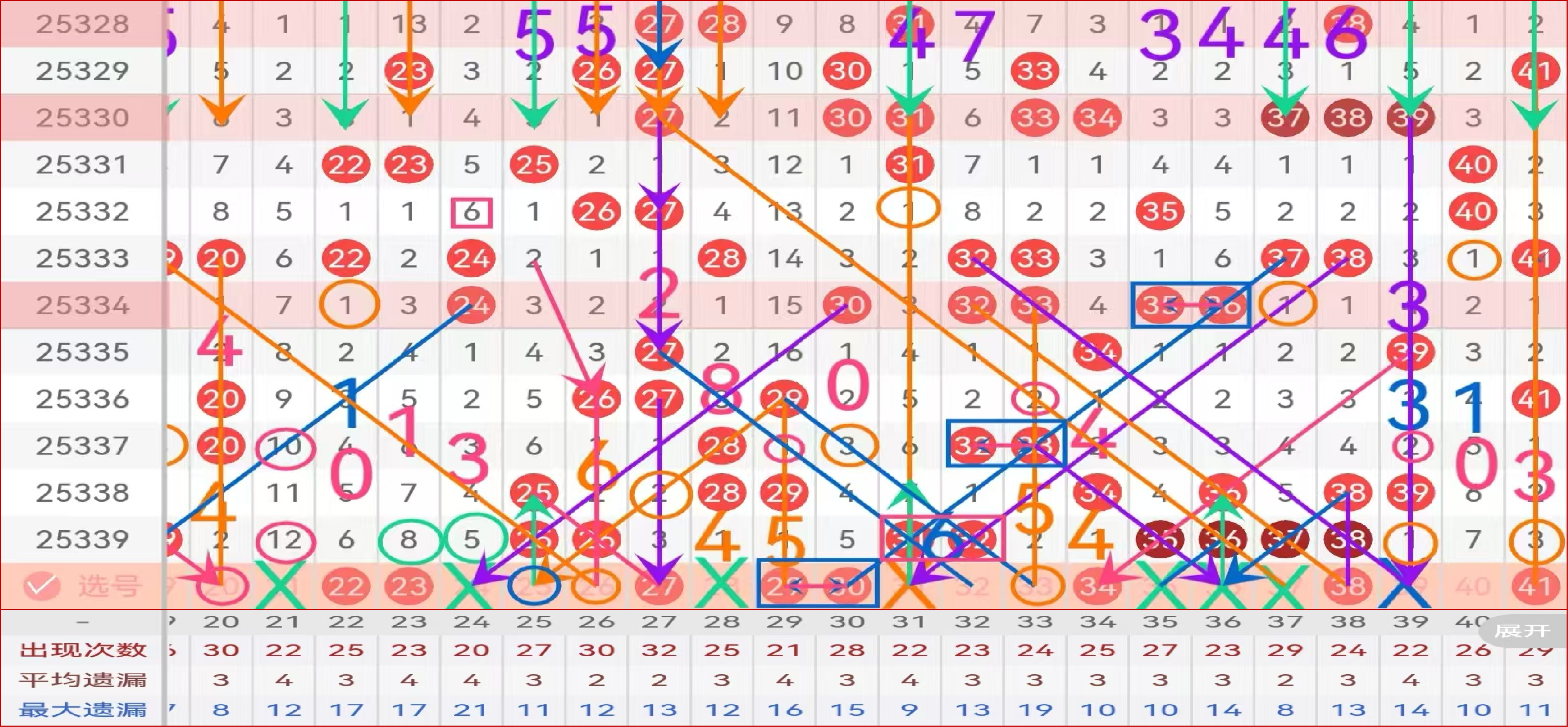 区间推荐主做号码22 23 27 29 30 34 38;防守号码26 33 40;