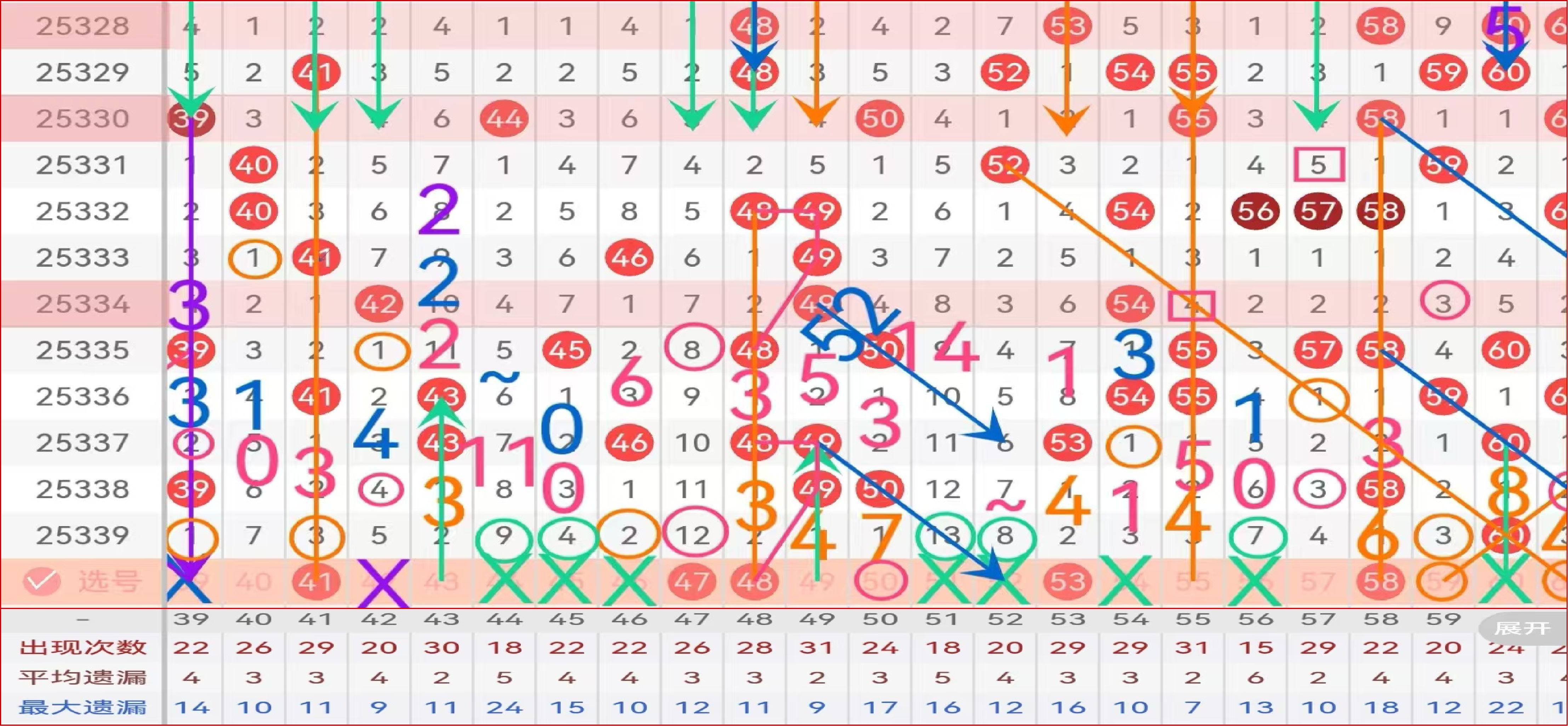 区间推荐主做号码41 47 48 53 58; 防守号码50 59;