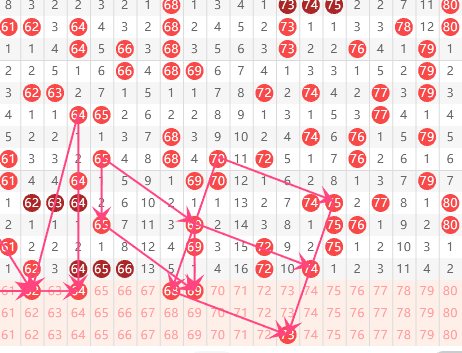四区分析:【61-80】(走势图标注号码非小黄车大底,请谨慎参考,具体思路将在直播间分享讨论)
