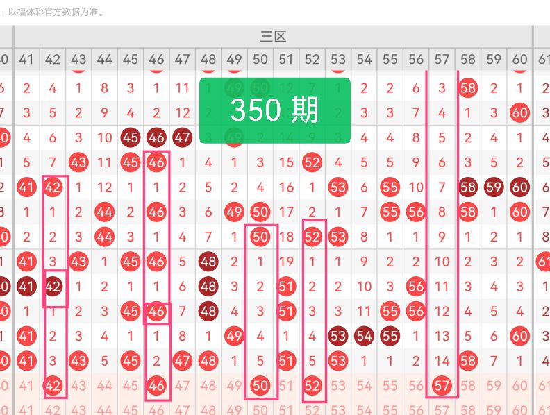 上期第三区间开奖8个号码,本期可能会减少开出。42与上期41、43形成邻号链,借助上期热号的辐射效应,成为补位号码;46能填补上期45-47之间的空缺,让中区出号更密集连贯;50作为区间中心对称点,历史上在热区回落阶段常作为“稳定锚点”出现;52处于上期51、53的中间位置,承接邻号热度,同时属于温号范畴,适配热度回落的走势;57是该区中后段号码,与58形成互补,平衡区间前后热号衔接与温号补位。