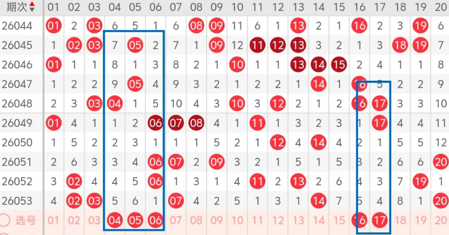 第一区间的走势分析:第一区间上期开出了五个号码球,主要的落号点位在一区间的前后半区,走出了两奇三偶的形态走势,上期一区间的前半区落下了三个号码球,后半区落下了两个号码球,整个一区间处于温态的趋势,根据一区间的走势规律,今天的一区间我们主看一区间前半区冷码的回补,主看前半区04 05 06这三个号码球的落位,注意它们两两组合的落位,再看后半区热码组合的回补,主看16 17姊妹对号码的落位,这五个号球建议大家打个五码复四,或者打个五码复三比较稳妥,参考为主!