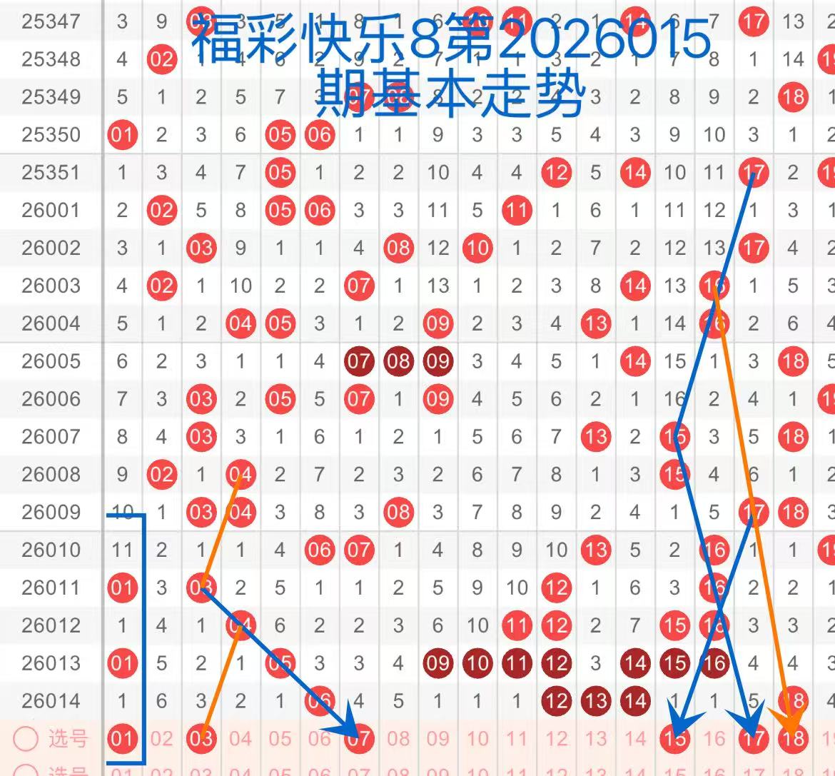 下面是我对2026015期福彩快乐8的分析和预判,希望通过我的分析能让大家今晚大满贯!福彩快乐8上期开奖号码如下图