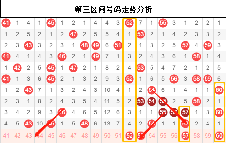 三区有点遗憾,昨天做了后半部分的55 56 58,结果开出54 57,完美的避开了我们的号码。好在前半部分终于是出现三个号码,从整个走势图上来看,号码虽然不多,但好在出现的还算均匀。那这个时候我们就要注意了,一个是区间上号码回落,另一个就是区间比上整体回调,在面对双重走势的情况下,三区作为中间区域,跟二区已经冷却了好久了。一区和四区最近风头无两,是到了扳回局面的时候了。