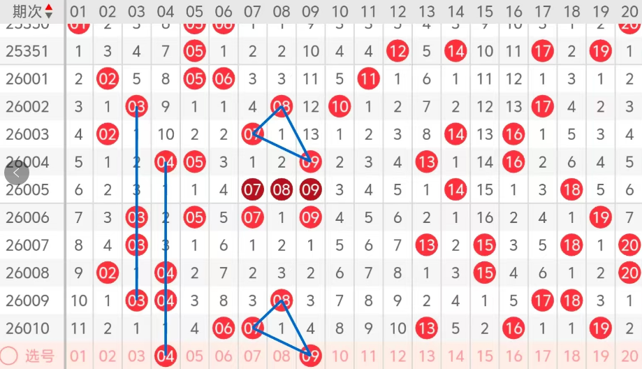 第一区间的走势分析:第一区间上期开出了五个号码球,主要的落号点位在一区间的前后半区,走出了三奇两偶的形态走势,上期一区间的前半区落下了两个号码球,后半区落下了三个号码球,整个一区间处于走温的趋势,根据一区间的走势规律,今天的一区间我们主看热码同形态走势的回补,重点关注前半期的同形态号码的落位,主看04 09这两个号码球的落位,04走出了和03一样的走势形态,09走出了上下对称的走势形态,这两个号球桶落的机会很大,建议大家打个两胆拖,或者自己配个号码球打个三码复二比较稳妥,参考为主!