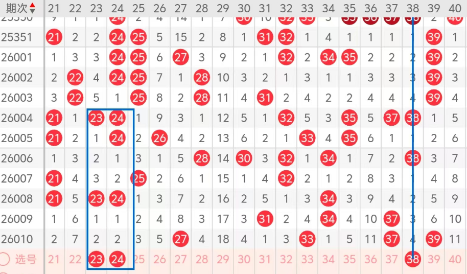 第二区间的走势分析:第二区间上期开出了四个号码球,主要的落号点位在二区间的后半区,走出了四奇的形态走势,上期二区间的前半区落下了一个号码球,后半区落下了三个号码球,整个二区间处于走冷的趋势,根据二区间的走势规律,今天的二区间我们主看重码组合以及夹码的回补,前半区主看23 24姊妹对重码的落位,走出了和上面姊妹对重码的走势一样,再看后半区大连码下面38这个夹码回补的走势形态,这三个号球建议大家打个三码复二比较稳妥,参考为主!
