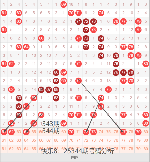 四区间61-80号码球走势,如下图: