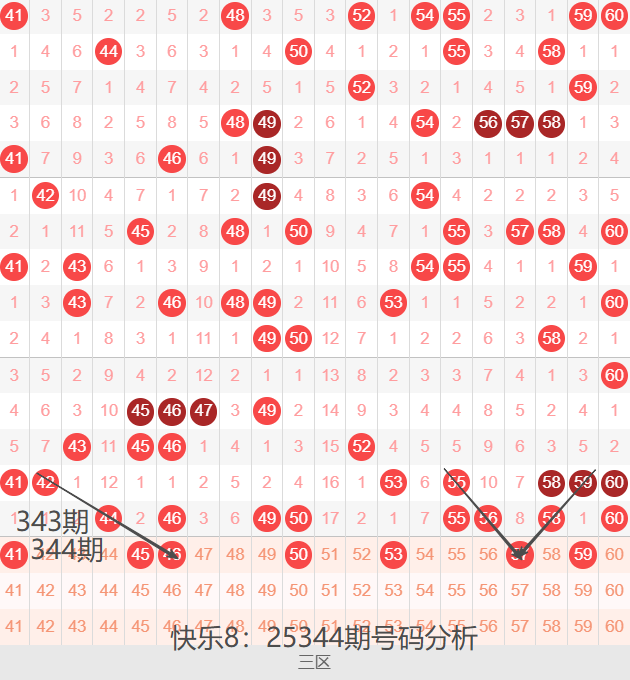 三区间41-60号码球走势,如下图: