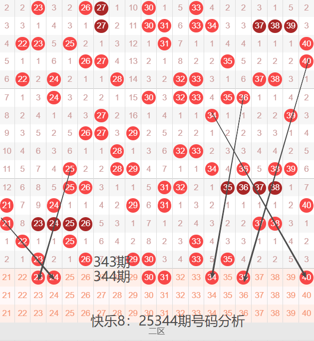 二区间21-40号码球走势,如下图: