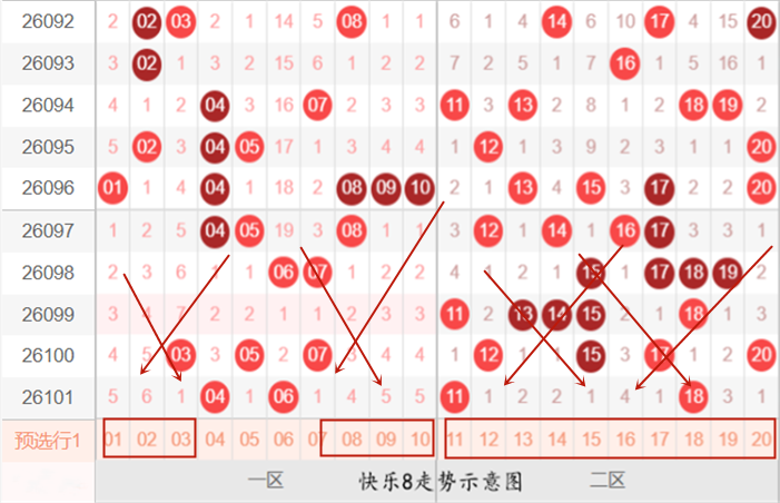 快乐8第26102期:冷热判断及号码分布分析【上期四胆点位四中三】