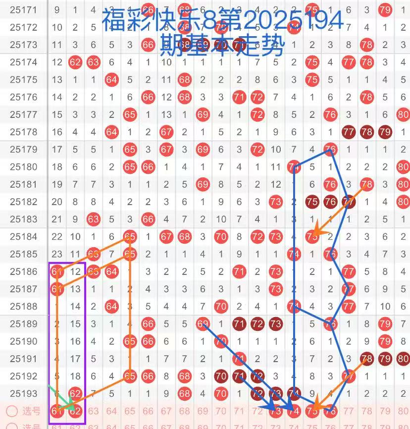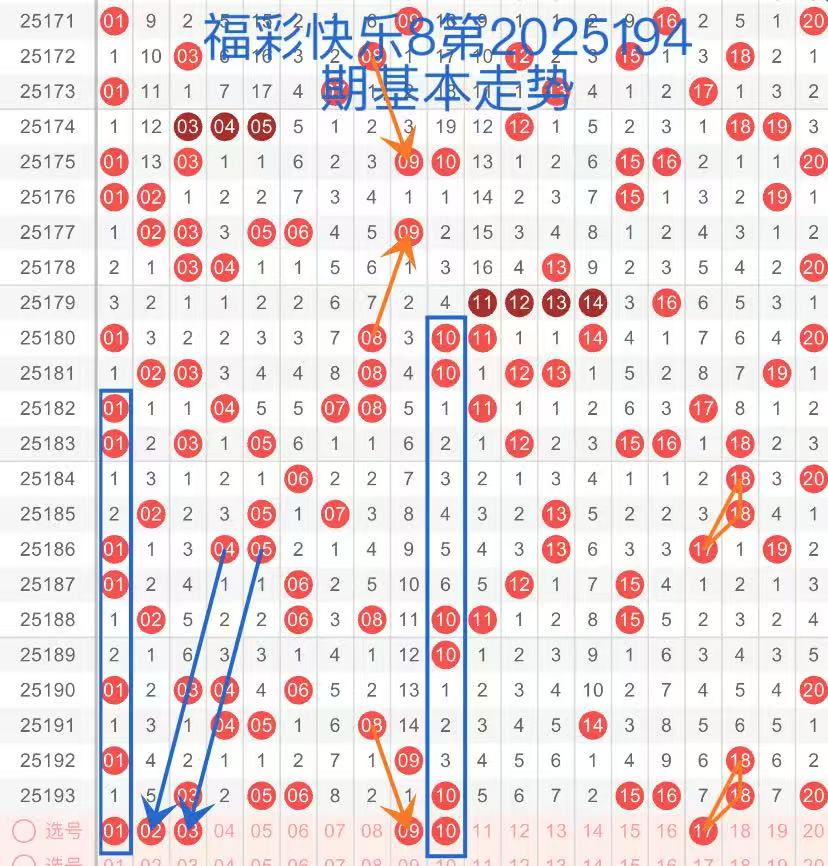 下面是我对2025194期福彩快乐8的分析和预判,希望通过我的分析能让大家今晚大满贯!福彩快乐8上期开奖号码如下图