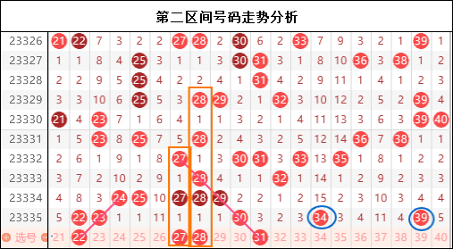 第一区间思路:一区虽然只开出四个号码,但是形态上确实本期中比较好看的一个。尤其是重号的下拉,至少保留了一区的体面。本期一区从走势看应该是隔期回补的思路多一点,不过面临前后均要回补的走势,选择上还是有一点困难的。不过随着区间的回调,越是号码少的区间越是要重点关注一下。