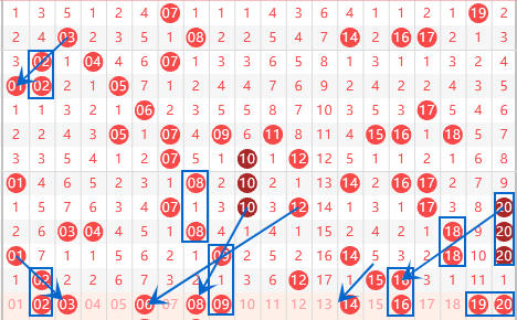 本期的02 03我们要注意一下,会不会复制上面的走势,我们要防守一下。本期的06号数字是属于遗漏7期的号码,本期我们要注意出号情况,06 09 12形成的三斜连还是有点多的,我们可以注意一下。本期的09号数字我们要注意一下,前面有08空一出号了,本期的09号数字也是空一出号,可以关注一下。上期开出了连号15 16,本期我们要注意一下出重号的情况。本期的19 20 21我们要注意出号情况,本期这里是有机会出一个号码的,我们可以重点注意一下。
