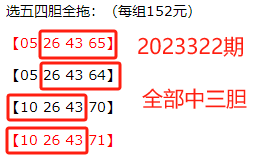 2.2023302期中一组4胆全拖,合计奖金17260元。