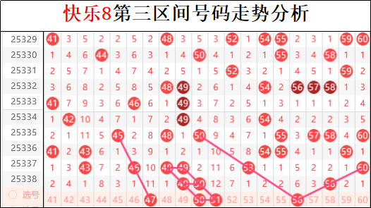 三区上一期按照常规布局直接给大家公推了连码的走势,结果就是常规布局稳稳开出。本期我们看到三区再次转回三码走势,不排除本期延续三码继续发展。目前三区唯一参考的点位就是连码的阶梯走势,显然这是风险布局。其次后端孤码基本上以分边走势为主参考布局。本期三区宜以阶梯连码为核心切入点,重点关注46、47、48阶梯连码结构的延续性,同时关注50、53作为断点回补的潜在力量,搭配42、45形成前置呼应,强化区间联动。斜连走势中56具备激活可能,可将其纳入防冷备用。