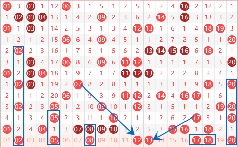 本期的02号数字是属于212走势,我们可以防守一下,本期的12号数字也是212走势,所以本期02 12出一个号码的情况还是有的,我们要重点考虑一下。上期开出了4连号07 08 09 10,本期我们要注意一下走重的情况,重点关注一下08 10出重号的情况。上期开出了连号空一带号15 16 18,本期我们要注意一下出重号的情况,夹号17号数字我们也是可以关注一下的。本期的20号数字是属于空一对称,本期我们要注意出号情况了,最近这种落号情况还是比较多的。