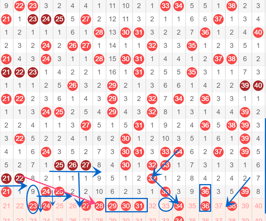下图为21-40号数字区间走势分析图: