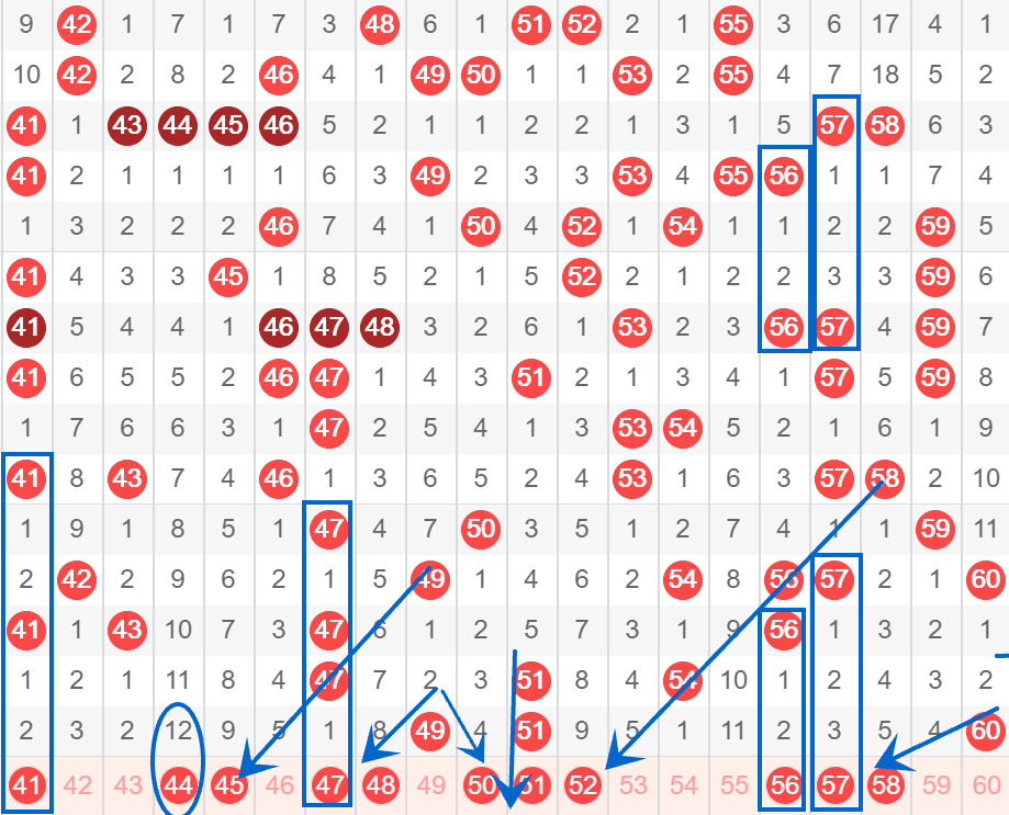 下图为41-60号数字区间走势分析图: