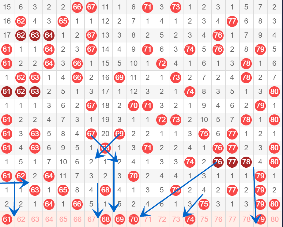 下图为61-80号数字区间走势分析图:
