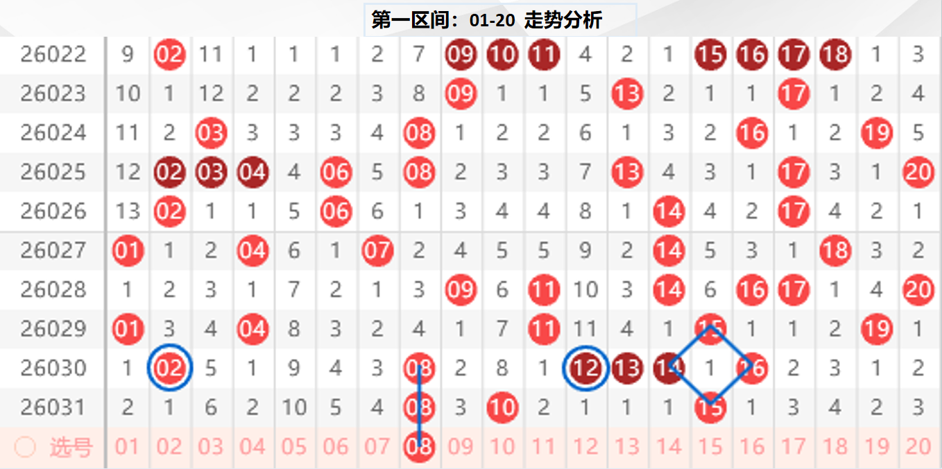 一区分析:【01-20】(走势图标注号码非小黄车大底,请谨慎参考,具体思路将在直播间分享讨论)
