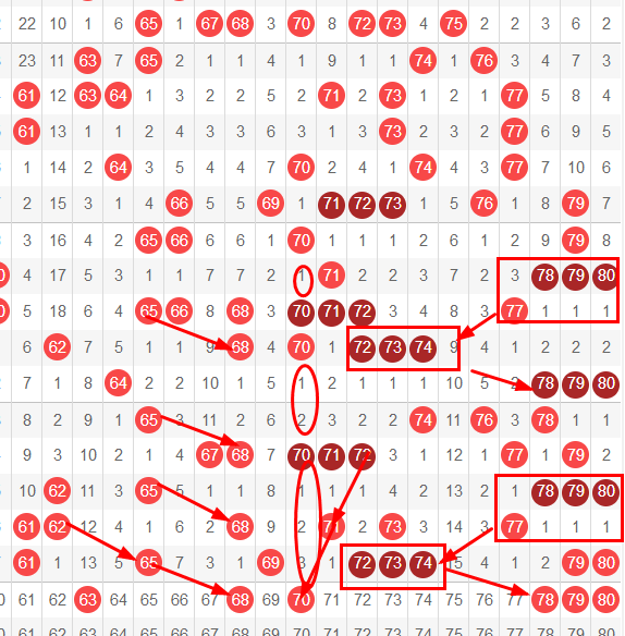 60~80区域推荐的号码,第一个63这个冷号防止他开出来,下面就是68号,我们看到65出现带68,就跟前一段时间35出现带38一样。而且68这个号码要具备一个62.65.68的走势,然后就是70号,70号是间隔123的间隔递增走势,同时具备一个727170的间隔一斜连。那么最后就是这个787980,我们看到和上期走势是完全一模一样的,这期考虑他还可以开出。这就是今天给大家推荐的所有号码,大家根据自己的。经验去甄别,本期就不再推荐号码了