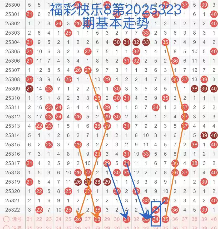 25323期福彩快乐8,走势综合分析(本期一胆参考34)