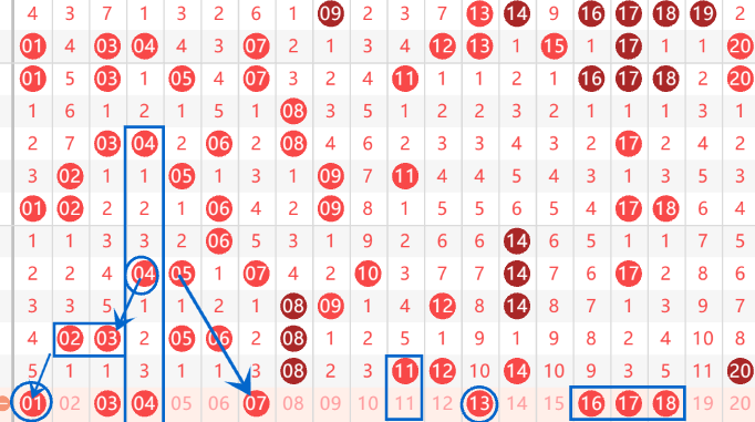 下图为01-20号数字区间走势分析图: