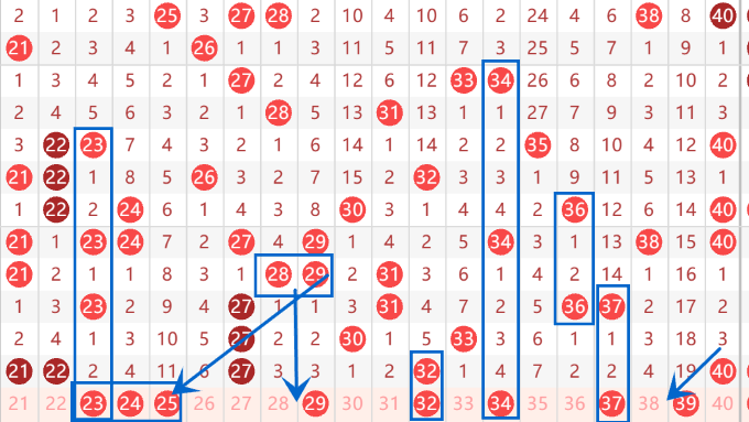 下图为21-40号数字区间走势图: