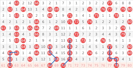 昨天四区间开出了(62.65.69.71.77.78)6个号码球的落号,这个区间走出了热态落号点,我们从盘面分析看出这个区间持续走热的趋势,那么本区间进行操作时一定要观察区域走势的震荡,6字头昨天62.65.69孤码落号,62重码下落今天考虑走三重,这个区间看重码落号,冷号的回调,本期预测这个区间出号在5码