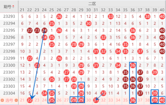 下图为21-40号数字区间走势分析图:
