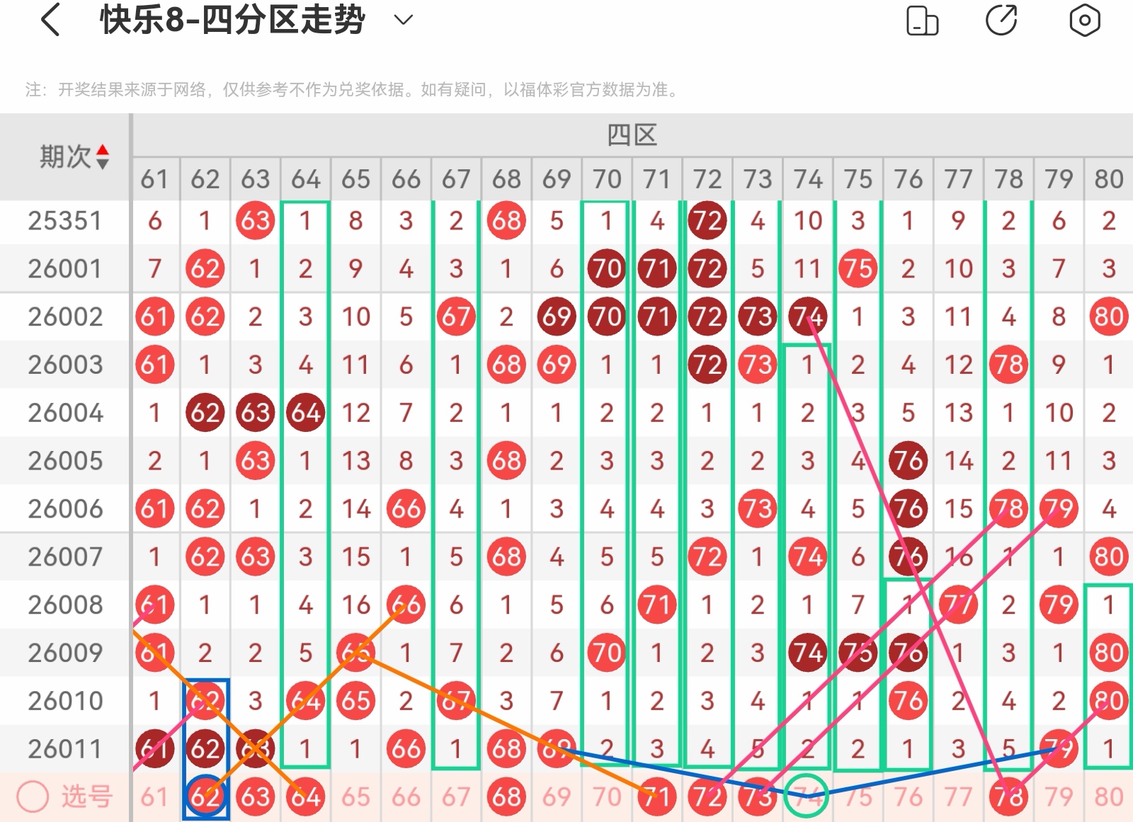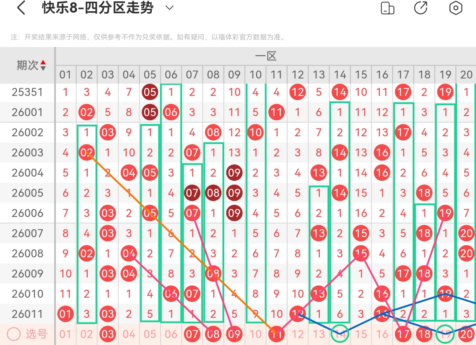 下面我为大家分享一下快乐八第26012基本走势分析: