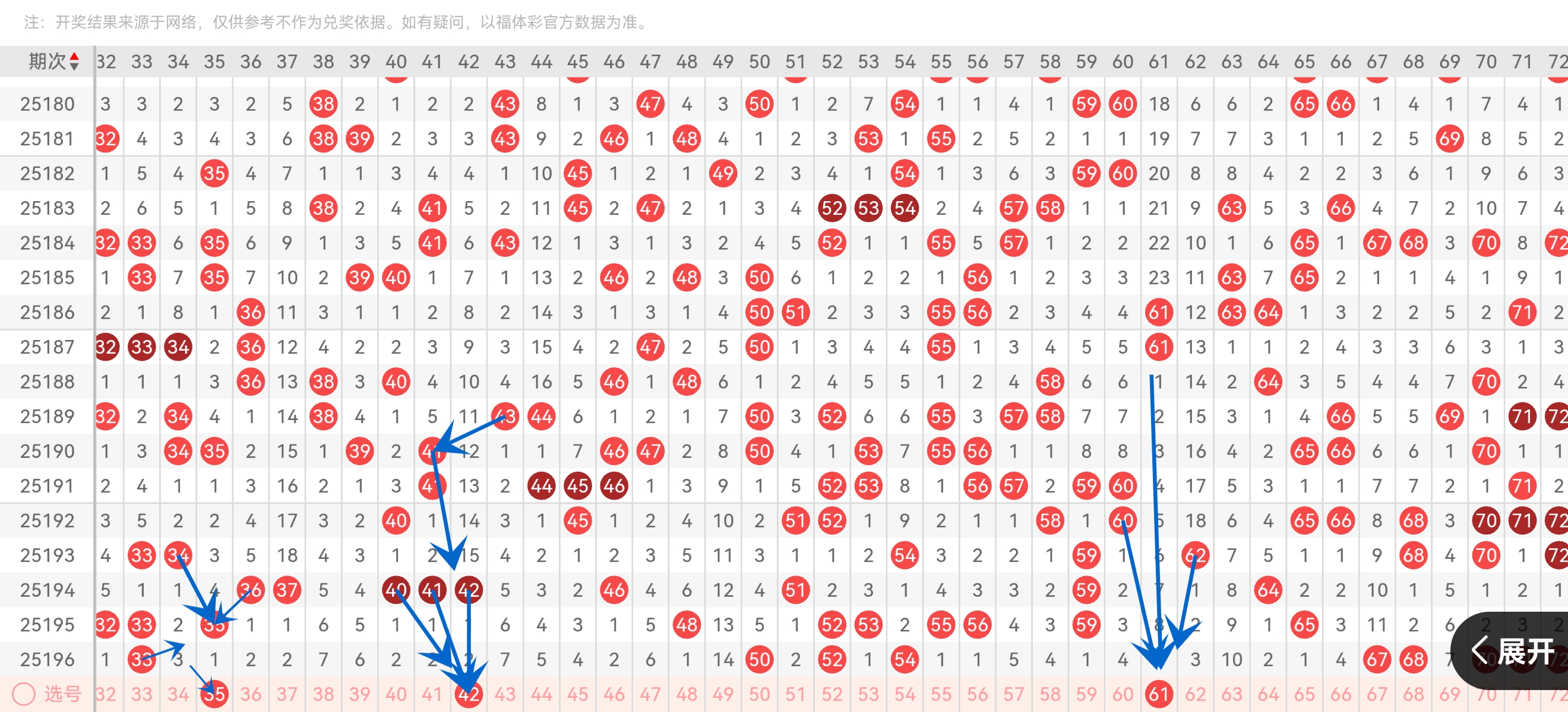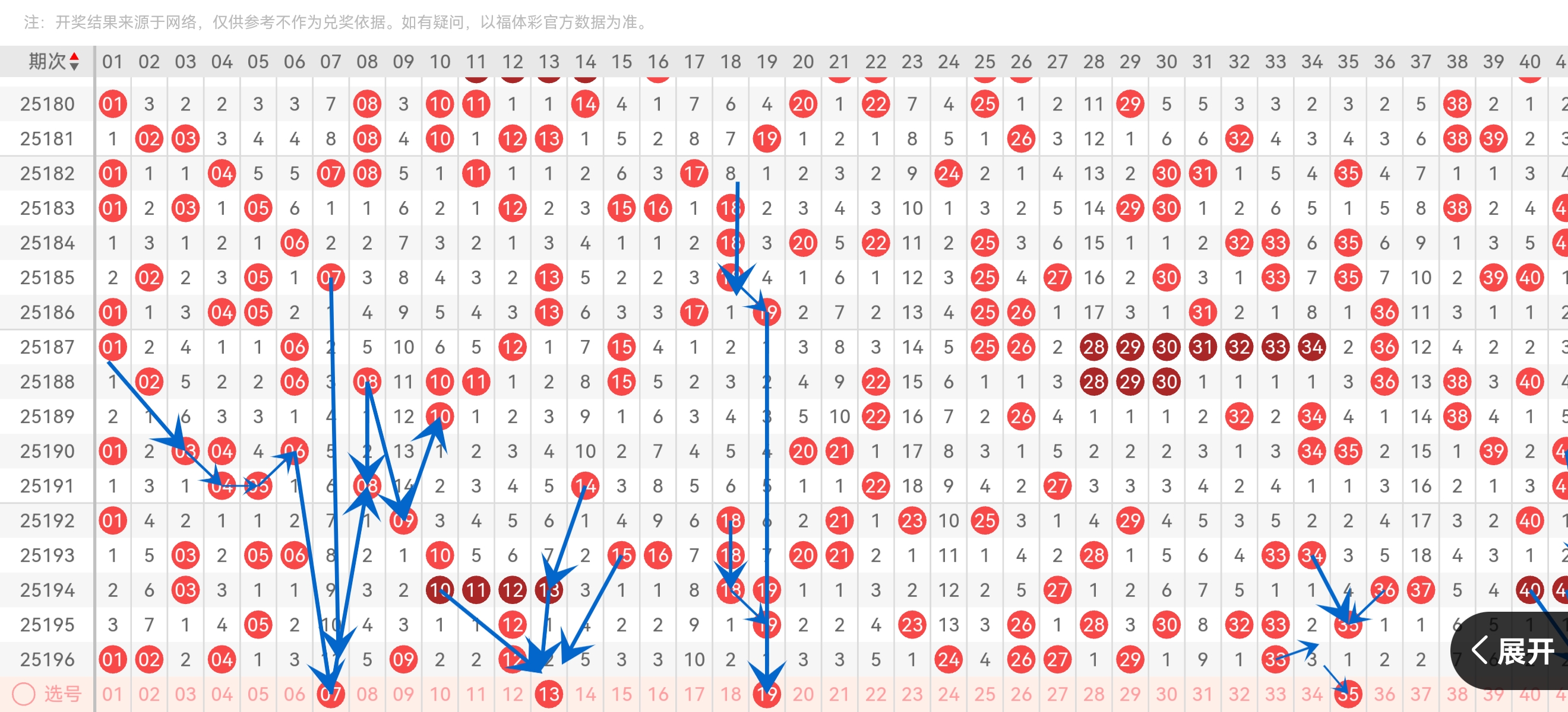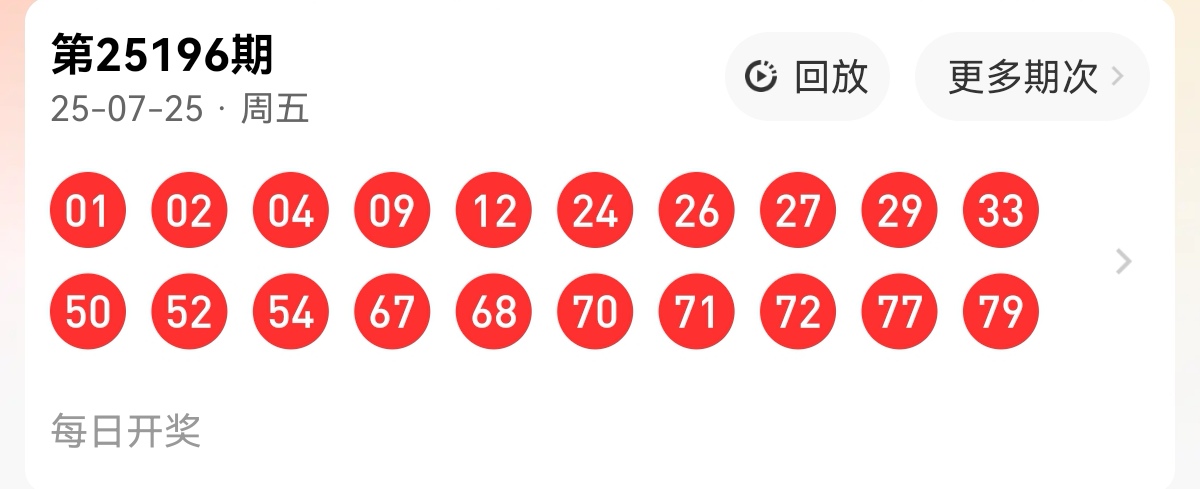 上期(25196)奇偶比为9:11,偶数占优(连续两期偶数活跃:25195期奇偶比9:11,25196期9:11)。本期看好奇数号码回补,奇偶比为12:8(奇数12个,偶数8个)。推荐在胆码中侧重奇数号码。