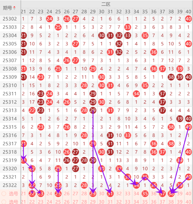 二区间注意参考的号22.23.24.25.26.29.35.37.38.39.40中关注4-5码开出机会。