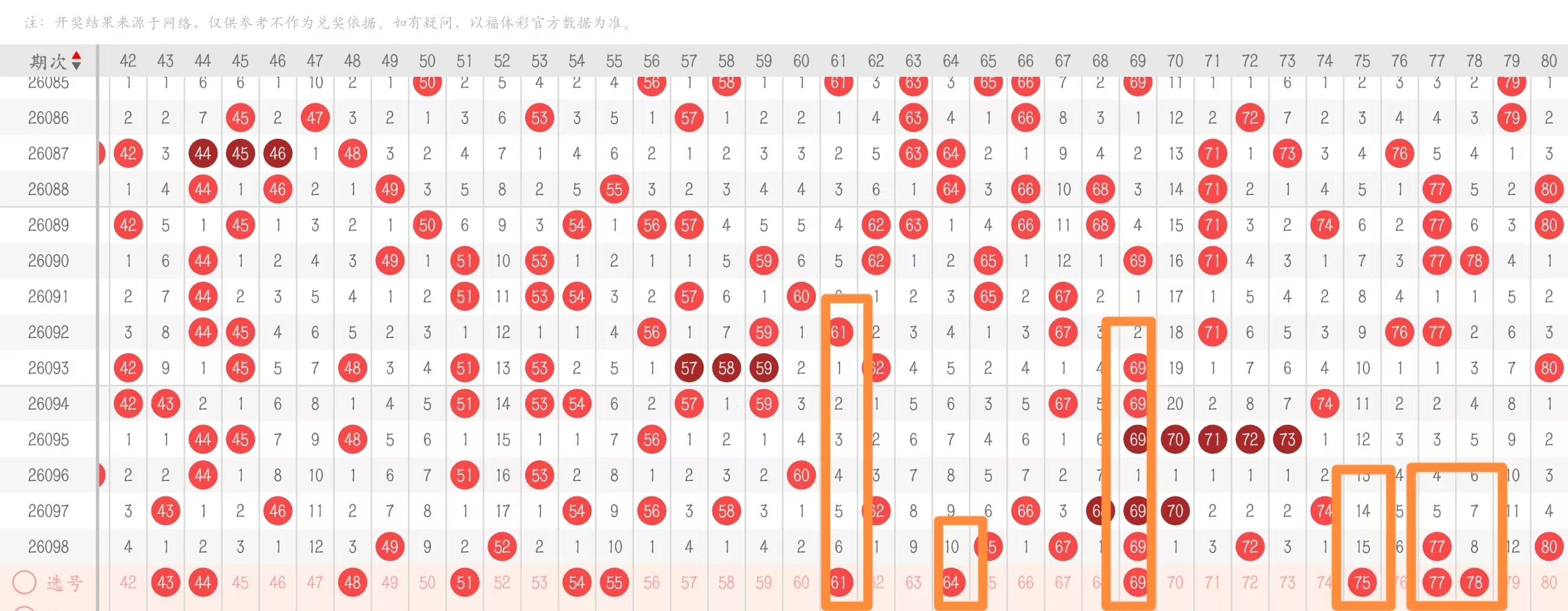 四区61-80:四区那么在前不久出现了冷态之后,近期的复热还是可以的,上期又是给到了六码,本期来说5~6码都是可以非常不错的号码涵盖点位,那么梅花有一边走斜连列68作为梅花的点位上可以不用去考虑我们可以看64,除此之外在七头的重码当中我们能考虑77 80同开选择一个走重,然后这里大遗漏下,毕竟有条件点会去带号,那我们就可以考虑75带77 78的对子带间隔整体的位置上面可以给到七头三码,六头三码的出号点