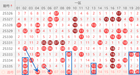 该区间的02号数字我们注意一下出重号的情况,上期开出了05号数字,本期我们注意一下走分边的情况,所以本期的04 06号数字我们注意出一个号码的情况,也是要注意把09号数字带出来的情况。上期开出了13 14 16 17号数字,本期我们注意一下出重号的情况,本期的16 17号数字出重号的机会不是很大了,所以本期我们重点关注一下13 14号数字出一个重号的情况就行了。本期的19 20号数字我们也是要注意落下一个号码的情况。
